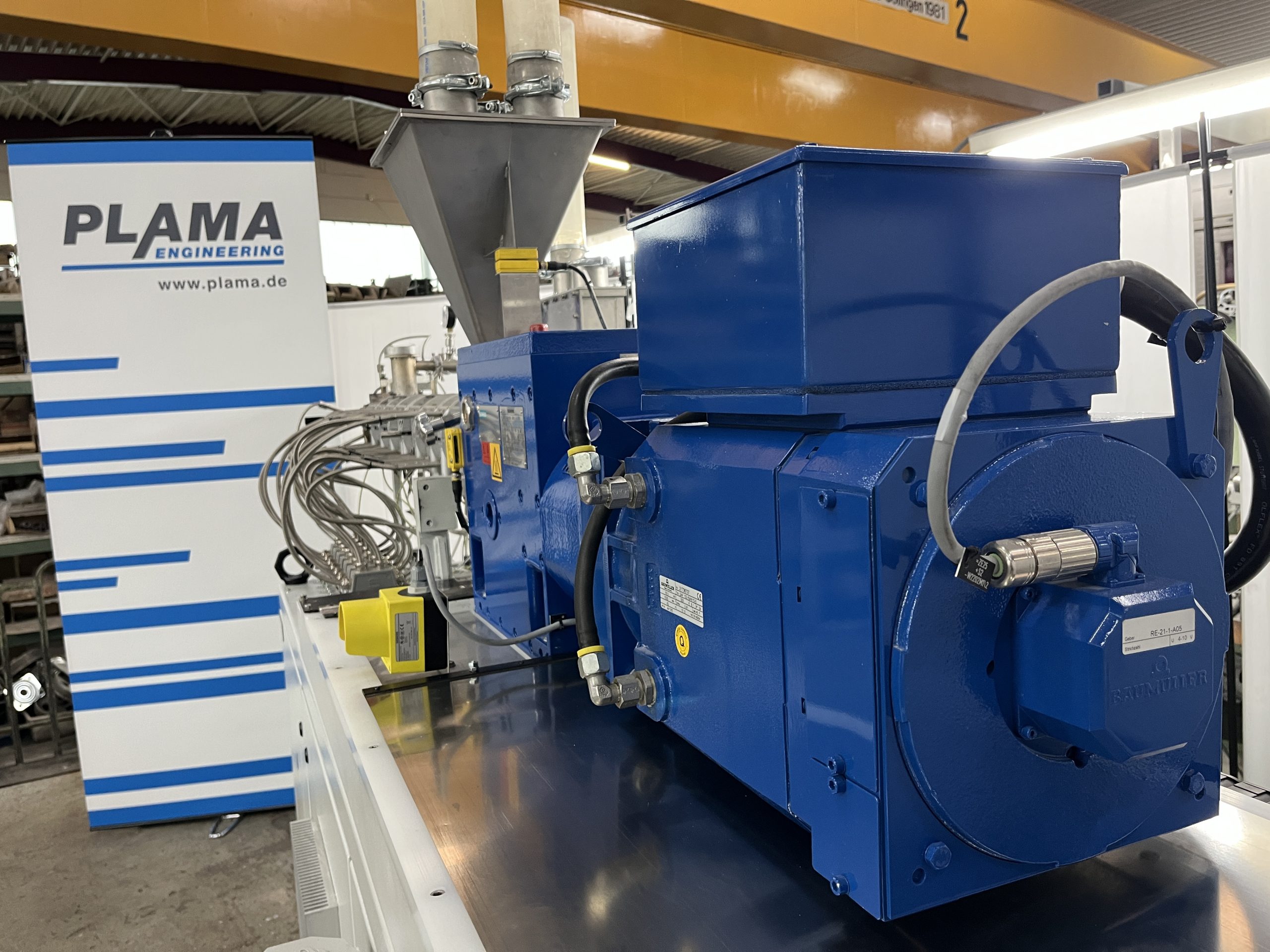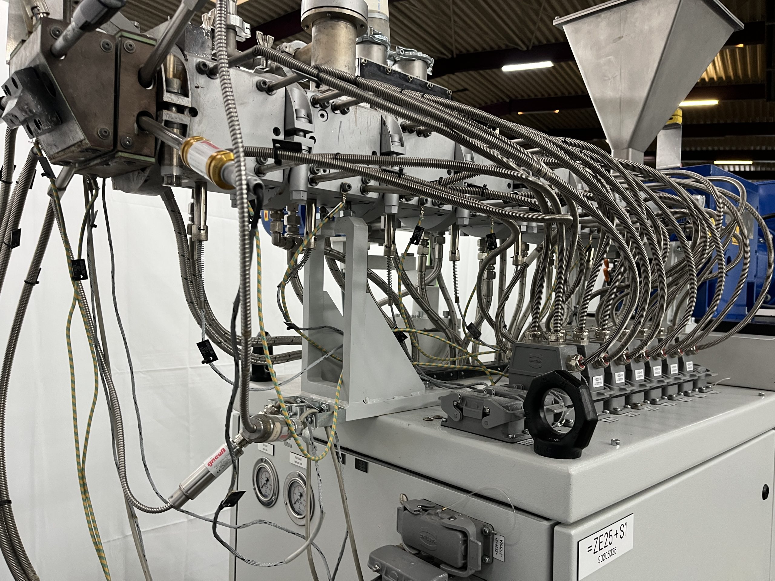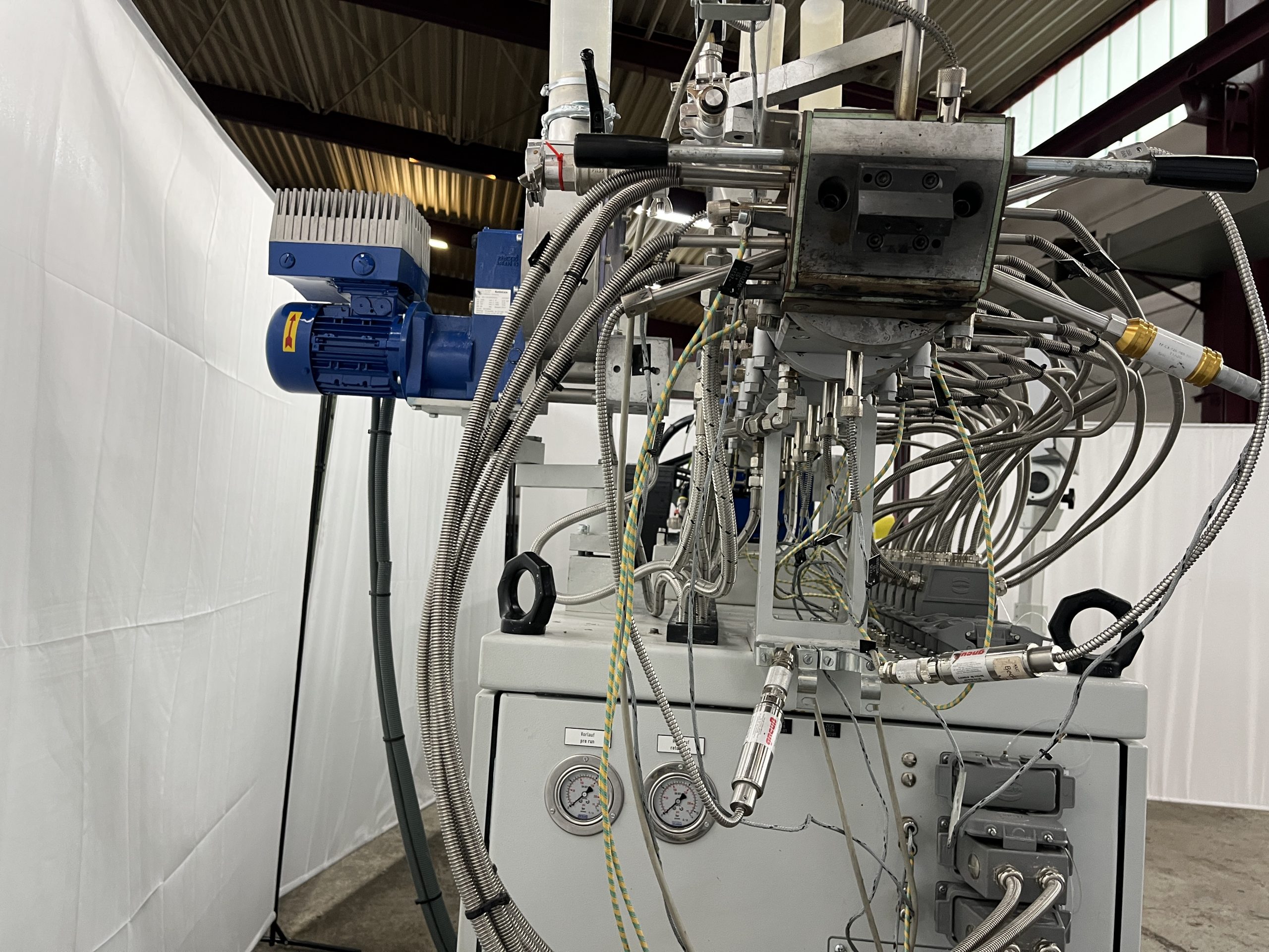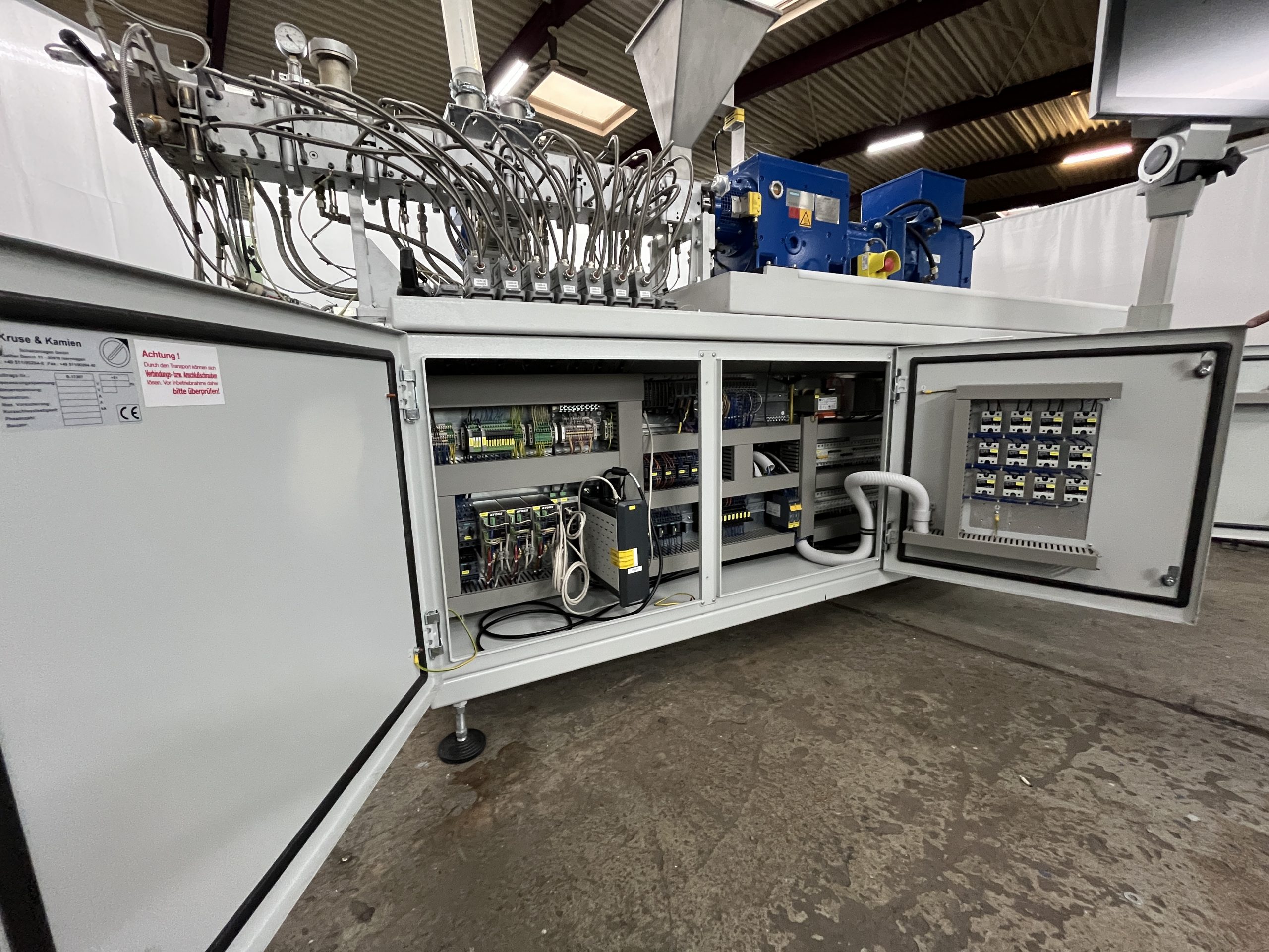 Material: PE, PP, PS, ABS // weitere Details: Gleichläufer, Vakuum-Entgasung, segmentierte Schnecken und Zylinder – Steuerung: Siemens