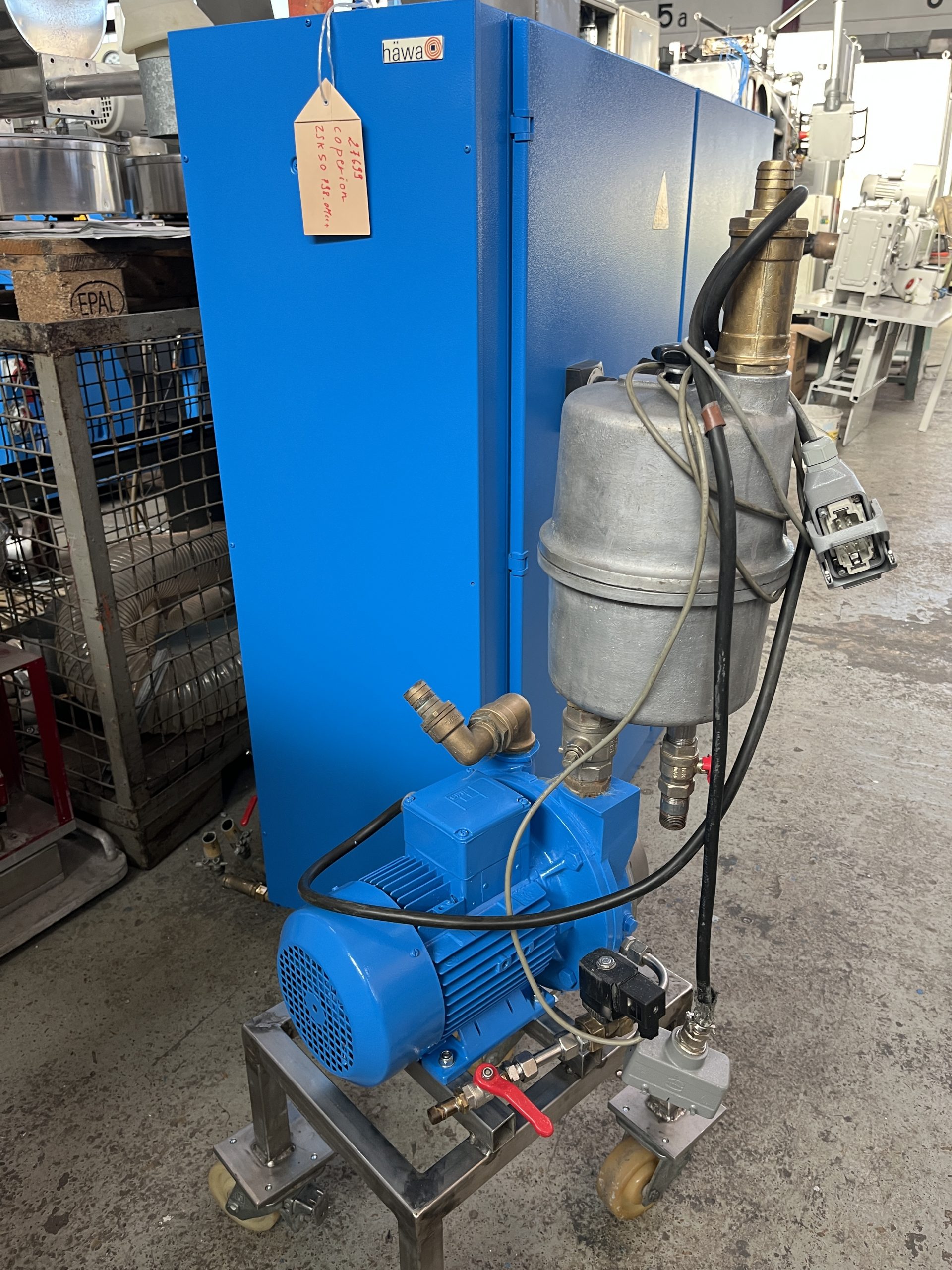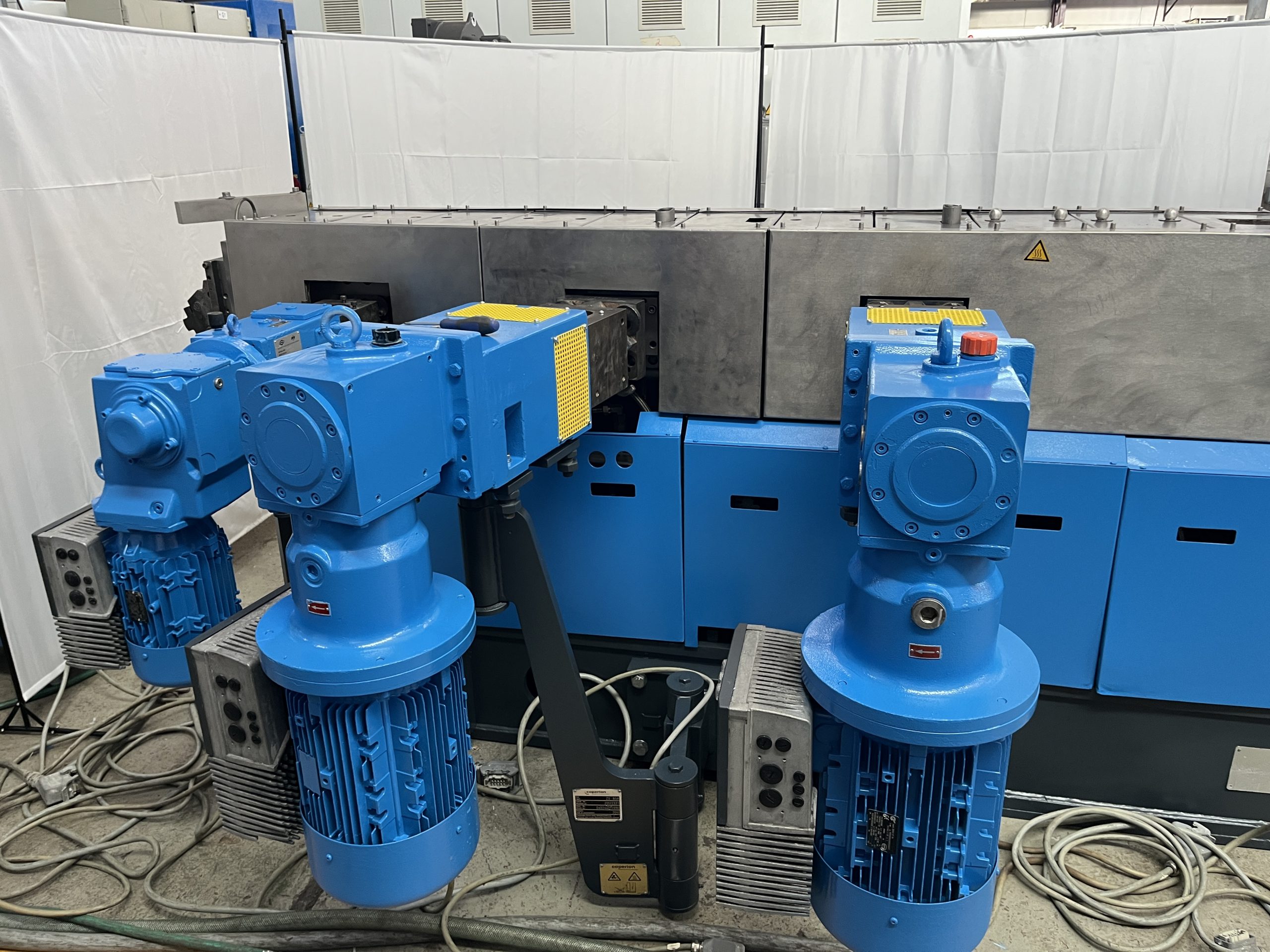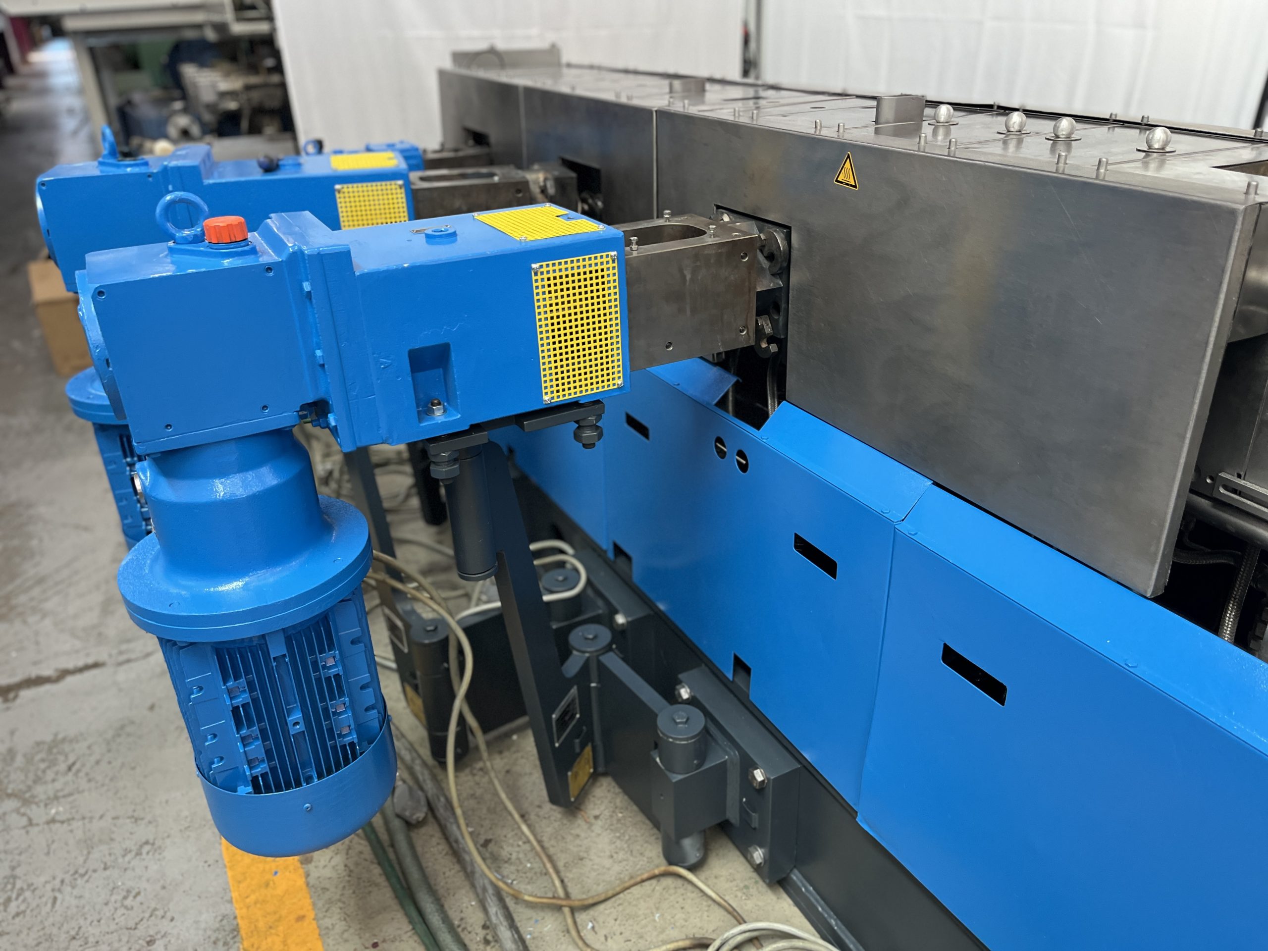 Details: Gleichläufer, segmentierte Schnecken und Zylinder, Vakuumpumpe, Temperiergerät, 2x Seitenbeschickung, 1x Seitenentgasung